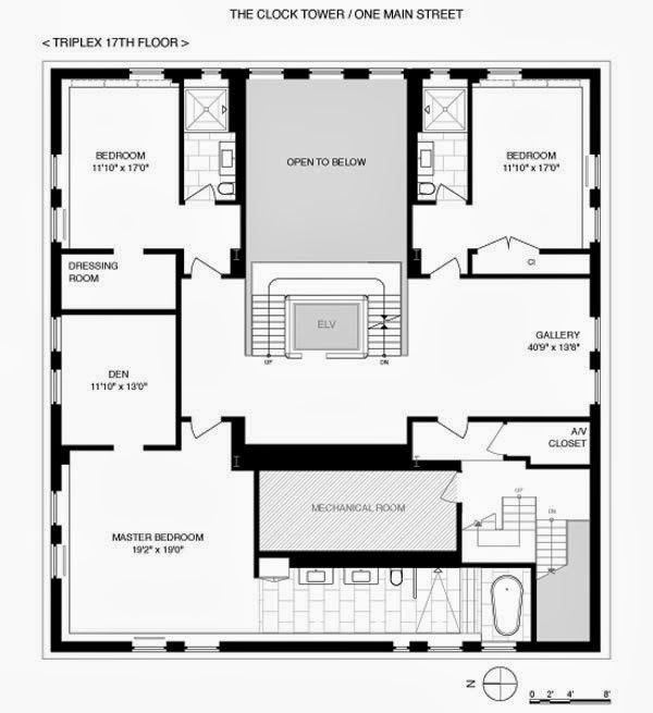 Me parece que sobran las palabras en el día de hoy porque este ático habla por si mismo. Este triplex se encuentra en el edificio de La Torre del Reloj en Brooklyn. Y si es vendido por la cifra de 18 millones de dólares se convertiría en una de las casas más caras de la historia de Brooklyn, aunque yo creo que seria posiblemente el ático más caro de la historia en general.